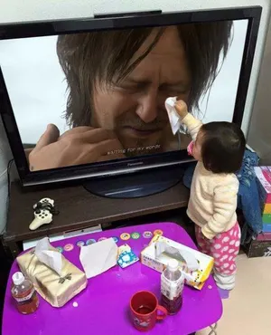 A meme associated with the video game 'Death Stranding,' which features surreal and often humorous interpretations of its gameplay and narrative elements, particularly following its announcement by Hideo Kojima at E3 2016.